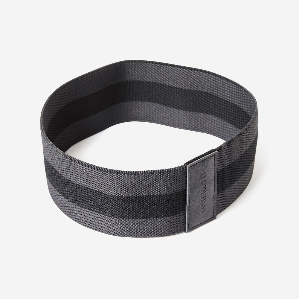 This high resistance (22 kg) weight training band is a must-have for lower body exercises that require a wide range of motion: crab walk, squatting with a band... Feel free to challenge yourself. The band's width keeps you comfortable throughout your workout. Also available in small (ref: 8653362).