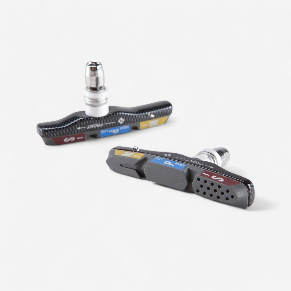 Tri-Zones V-brake pads. 3 colours for 3 rubber densities.