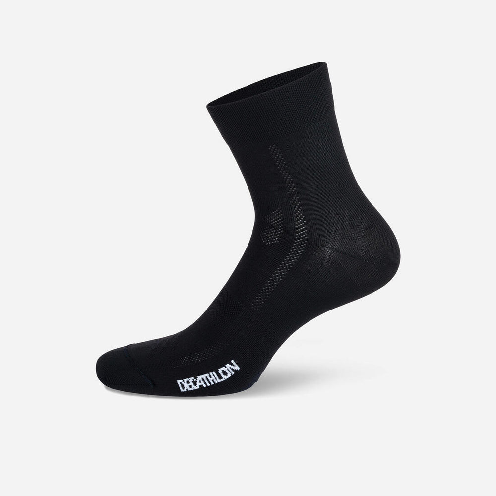 Whether you use your bike for daily errands or for competitive racing, cycling takes a toll on your feet. Movement can result in friction, which, coupled with perspiration, can feel very unpleasant. This is why wearing socks designed for the type of cycling you do can significantly increase your level of comfort! This pair of B'Twin 500 socks wicks away perspiration, offering comfort during regular rides thanks to the lightweight fabric.