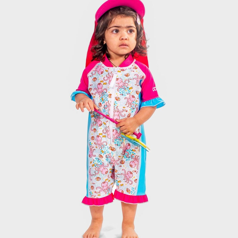 The popular COÉGA baby girl’s One Piece Suit is designed with ¾ length zip for quick and easy access for your active little one.