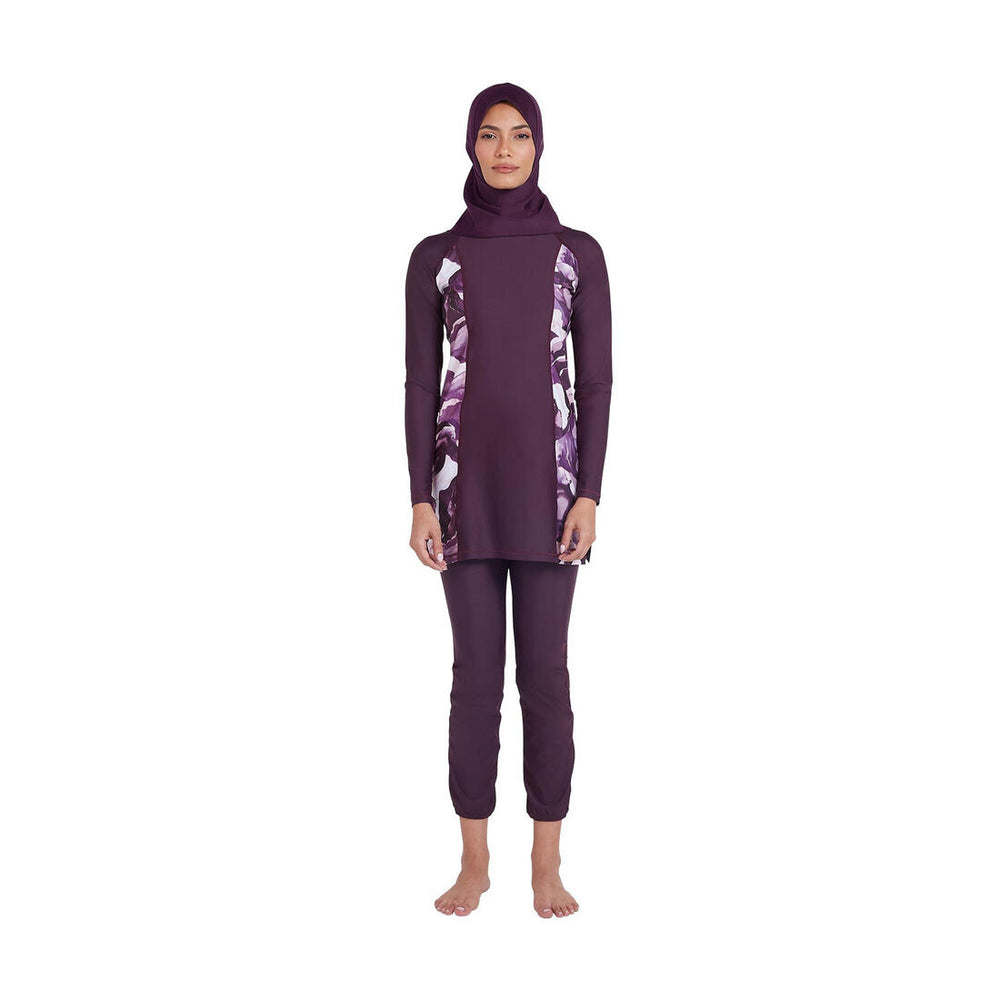 This unique and comfortable three-piece design is perfect whether looking for modesty or extra sun protection, while enjoying water sports at the beach or pool. One of our best-sellers in the Modest swimwear collection made with soft stretch fabric, the outfit includes a mid-length long sleeve Swim Tunic, coordinated full length Swim Trousers and a well-fitted Swim Shaela. Go Ahead, Love the Sun!