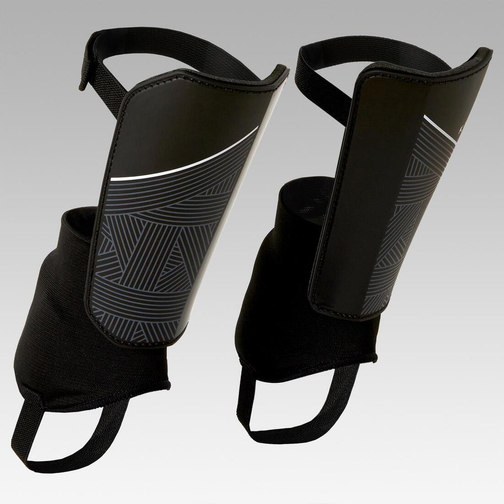 Our design team developed these shin pads by observing young footballers on the pitch, as they trained or played matches. Tackles are part of the game, so to better protect you, our football designers created these shin pads with a plastic shell paired with a shock-absorbing foam pad for impact protection. They meet European standard 13061 which defines shock absorption and the shell's level of resistance.