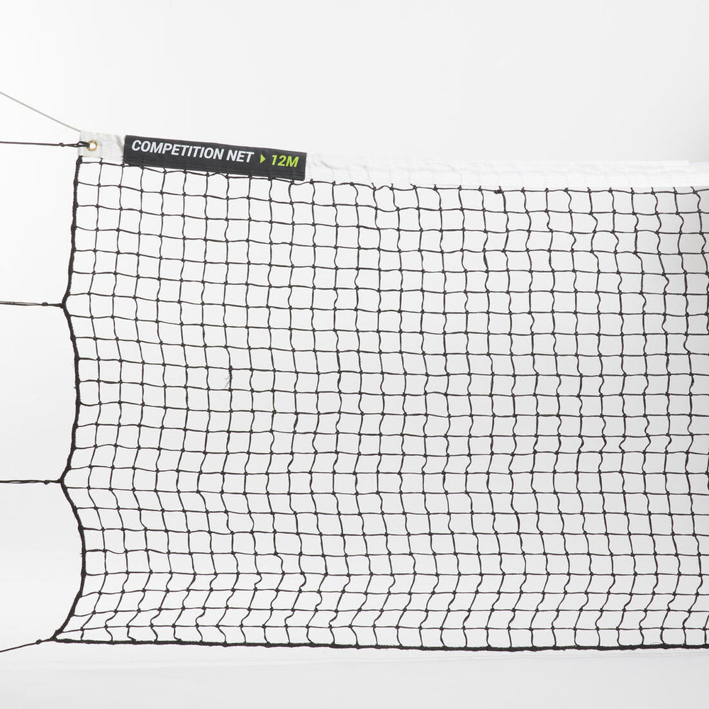 The Competition net can be adapted to fit all types of approved courts. Cable length: 13.7 m Cable diameter: 3.2 mm Net length: 12.7 m Maximum net height: 1.07 m