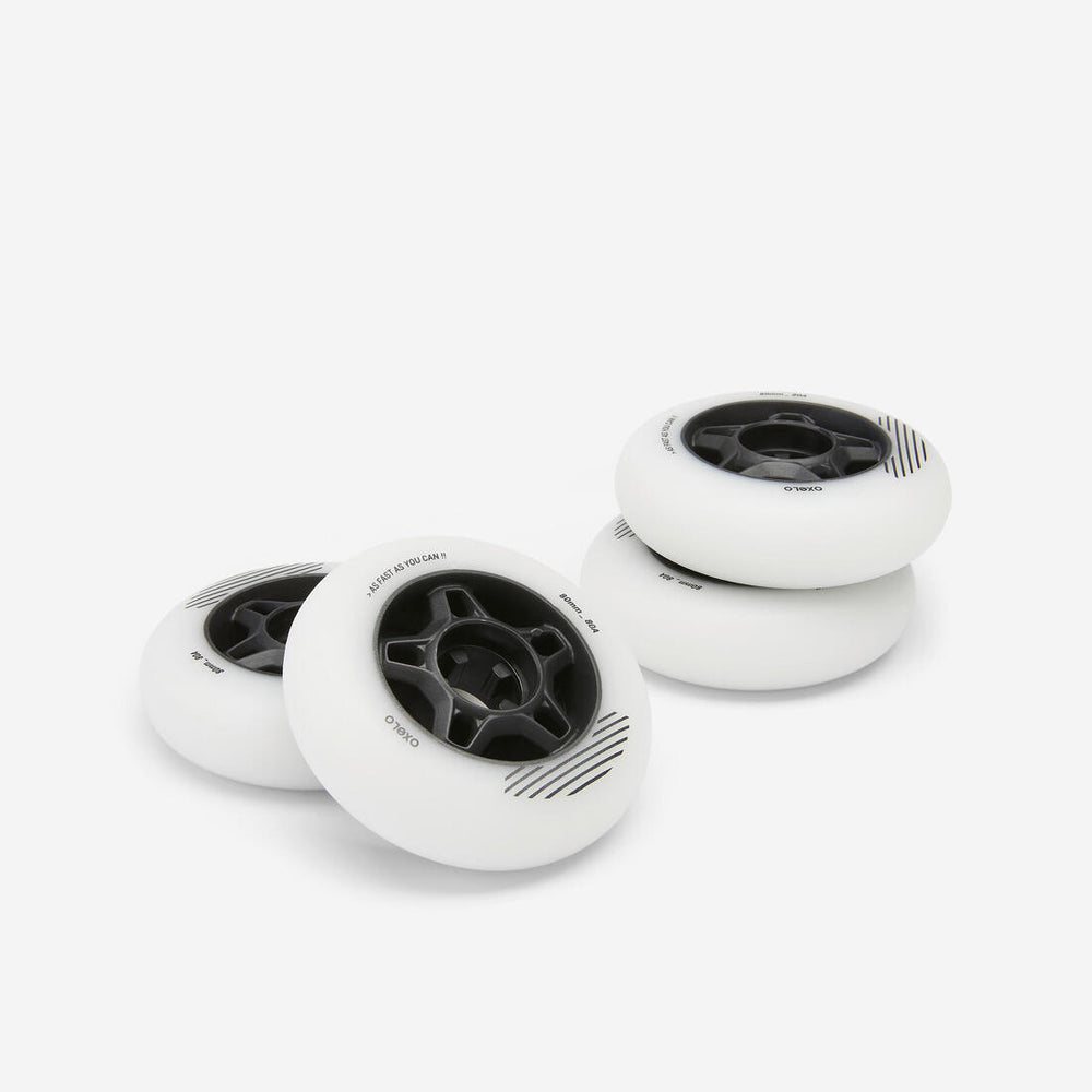 Wheels suitable for the Fit 5 Juniors (sizes 2.5/5 and 5/7), and the adult Fit 5, FIT500, FIT100, Sneak-In, Freeride MF500, Freeride 3 and Freeride 5 inline skates.