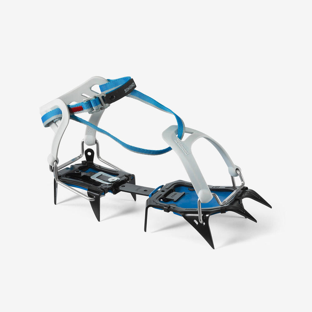 - Full strap-on binding system (front and back), compatible with all shoe types with or without front and back welts. - Note: the binding systems at the front and back are fully removable and can be replaced with all other fastening systems in the SIMOND crampon range (sold separately).
