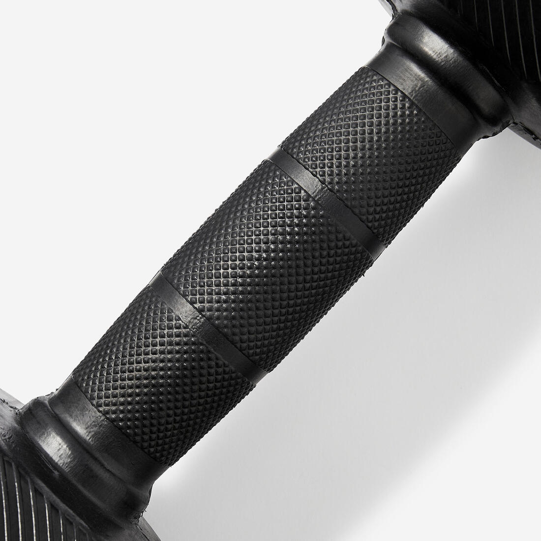 - The grip you need! Confidently transition from one exercise to the next, the knurled steel handle guarantees an excellent grip during workouts. - A product designed to last! A sport-specific product that will stand the test of time. The dumbbell's handle has an electro-galvanized finish for lasting durability. - Don't be afraid to let it drop: the rubber coating will soften impacts!
