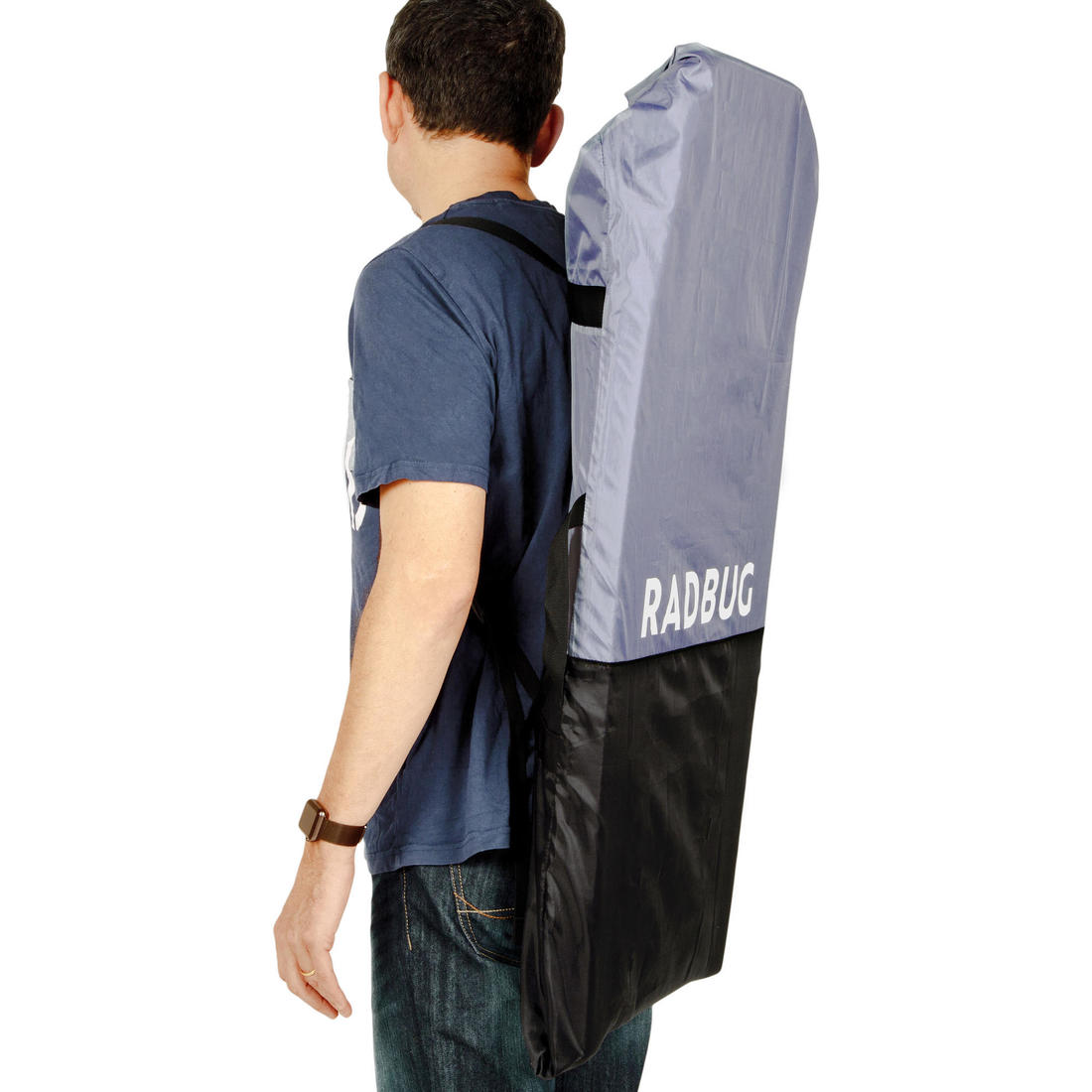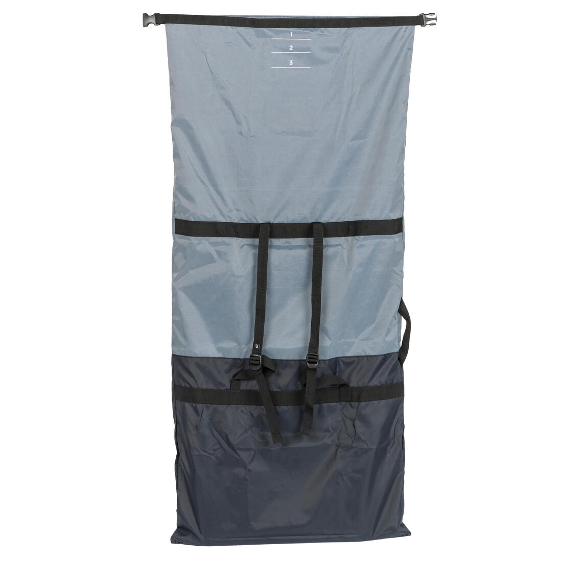 We advise you to roll it up as many times as necessary (and at least 3 times) to ensure a good hold of the board in the bag, then close the buckle on the back of the bag.