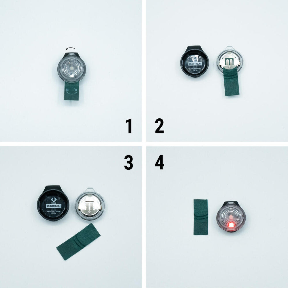1 CR032 battery in the transparent compartment with a 1/8 turn.