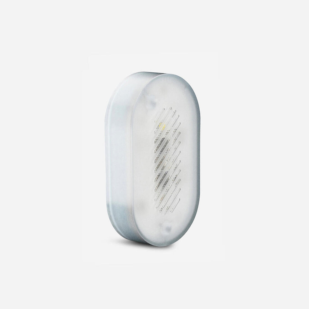 The light was designed to attach almost anywhere. You can attach it onto your clothes, your bag, your shoes or your bike using its elastomer strap. B'Twin has created numerous compatible products, such as mudguards, panniers, helmets, etc. that a clip light can be attached to. To increase your possibilities, a 3M self-adhesive interface is also available under the reference: 8771050