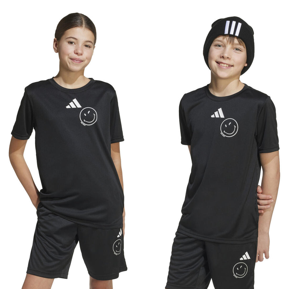 This juniors' adidas tee is all about happiness. Made in collaboration with Smiley World, it showcases a reflective Smiley graphic that can't help but make you grin. CLIMACOOL wicks and disperses sweat for cool, dry and distraction-free performance. CLIMACOOL helps you manage sweat with materials that wick and manage sweat quickly. Its fast-dry fibres give you a fresh-skin feel. Product Code: JN2164