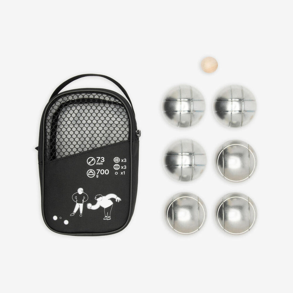 Learn to play petanque with a friend using this set of 2 x 3 boules.This kit lets you play on soft terrains (sand, rough sand, grass, etc).
