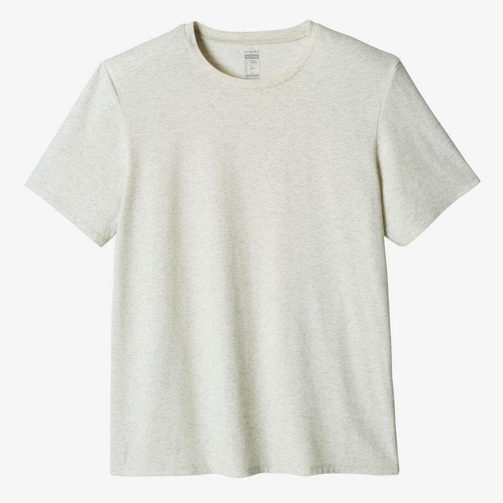 You don't need to be a fashionista to put together a great outfit: our cotton T-shirt is a sure bet every time. How? Its short sleeves are perfect when it's warm outside. And when it's cold, you can simply layer up. The crew neck is flattering while the straight cut is comfy. The cotton (63%) promotes ventilation to help keep you dry.
